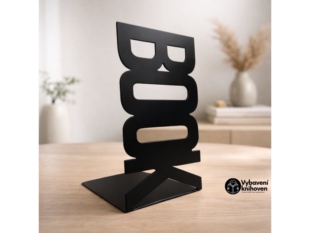 Moderní kovová zarážka s nápisem „BOOK“ v elegantní černé barvě. Stylový a funkční doplněk, který spolehlivě udrží knihy na místě a dodá vaší knihovně výrazný a originální vzhled.